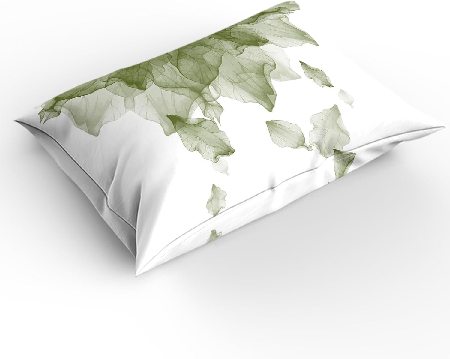 Abstract Sage Green Floral Comforter Cover Queen, 4 Piece Bedding Set with Zipper Closure All Season Duvet Cover for Child Girls Boys, Breathable, Soft Minimalism Art Watercolor Printed