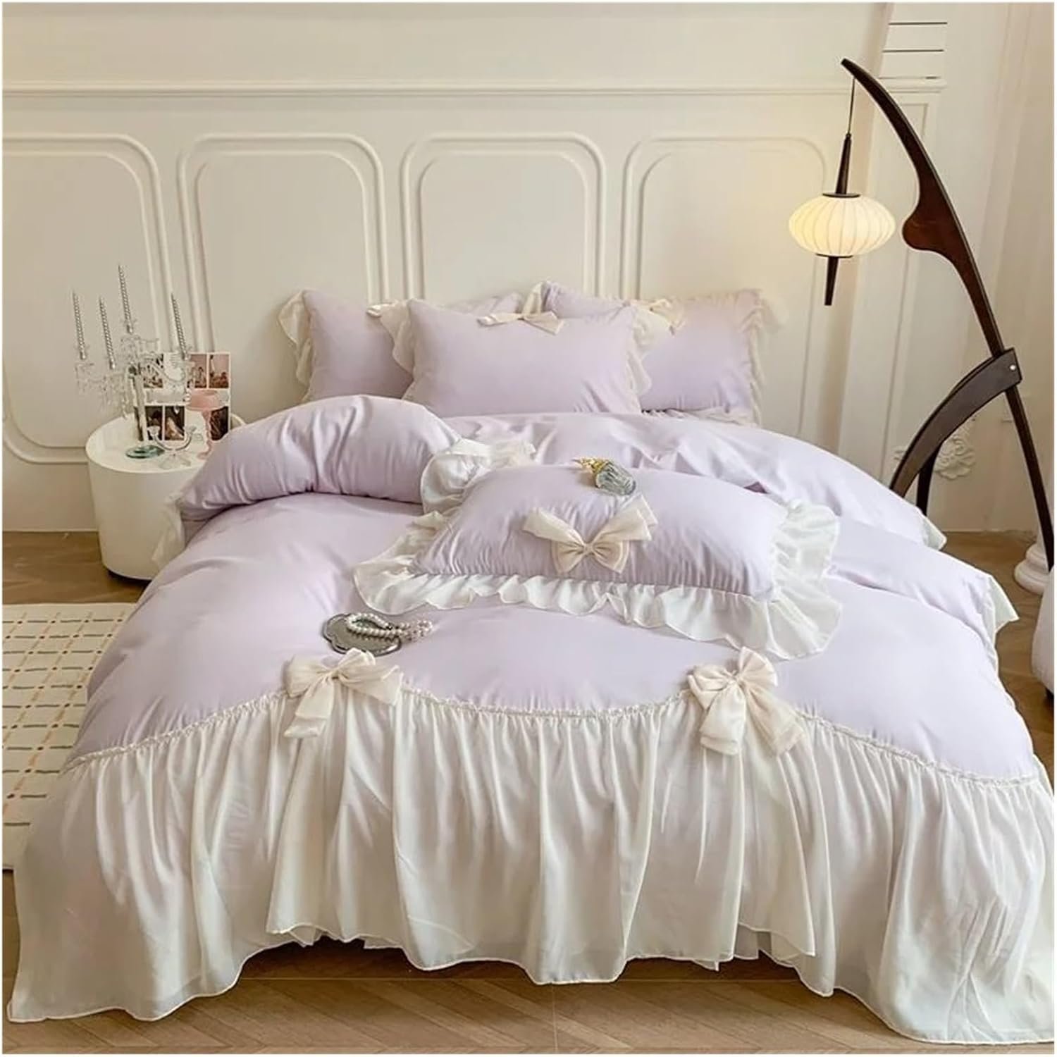 Duvet Cover Sets, Ruffle Bedding Set Ruffle Duvet Cover Set Cozy 4 Piece Bedding Set(D,2.0m Bed 4pcs)